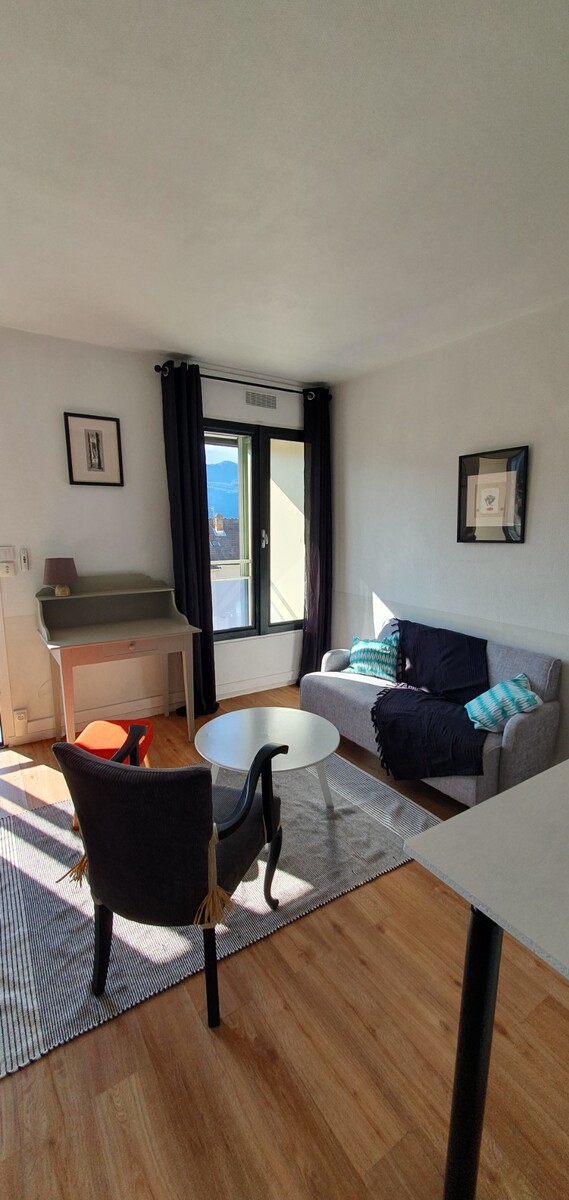 Aix les Bains, Studio meubl? de 28.93 m? habs au 4?me et dernier ?tage, Bd de paris, balcon abrit?, cuisine ?quip?e ouverte sur pi?ce principale, salle de bain, wc et une cave compl?te ce bien, proche commerces, chauf et eau chde collectifs fuel dans les provisions. Vue d?gag?e. Disponible imm?di?tament. Contactez Alexandra au 06 59 91 54 59 pour tous renseignements et/ou visiter le bien. (Possibilit? place de stationnement privative) Loyer nu 577.00€ + 135.00€ (provisions mensuelles) = 712.00€ D?p?t de garantie: 1154.00€ Honoraires agence charge locataire, 274.84 € (dont 43.40€ pour ?tat des lieux)
